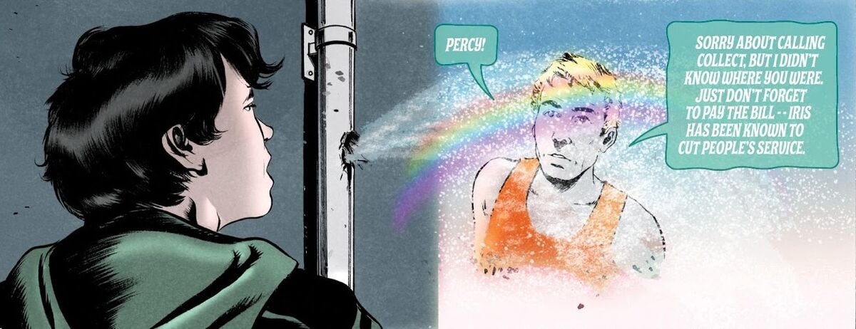 She has been mentioned and had a few roles in the Percy Jackson series. Show me name and place of person Percy sending Tyson an Iris Message. THE SEA OF MONSTERS by Rick Riordan.